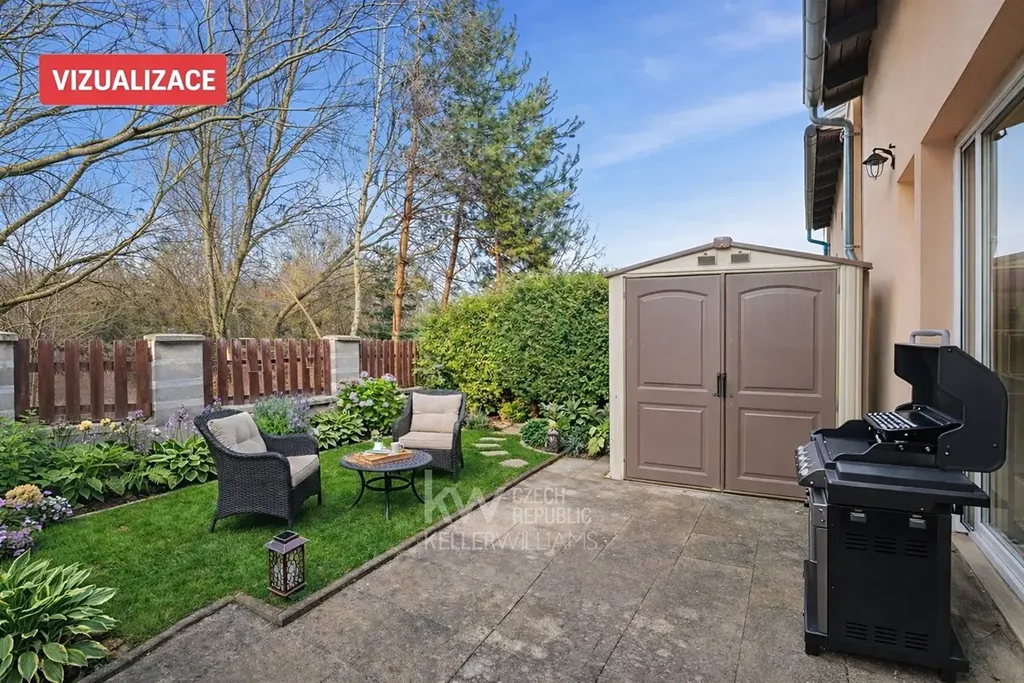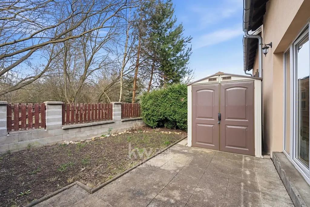 Dům byl kolaudován v roce 2010. Nabízí cca 100 m² podlahové plochy, pozemek o celkové výměře 150 m², vlastní parkovací stání před domem, terasu se zahrádkou navazující na obytný prostor a nechybí ani balkon. Praktická dispozice a příjemné měřítko domu z něj dělají ideální volbu pro rodinu, která hledá kombinaci soukromí, funkčnosti a dobré dostupnosti do Prahy.