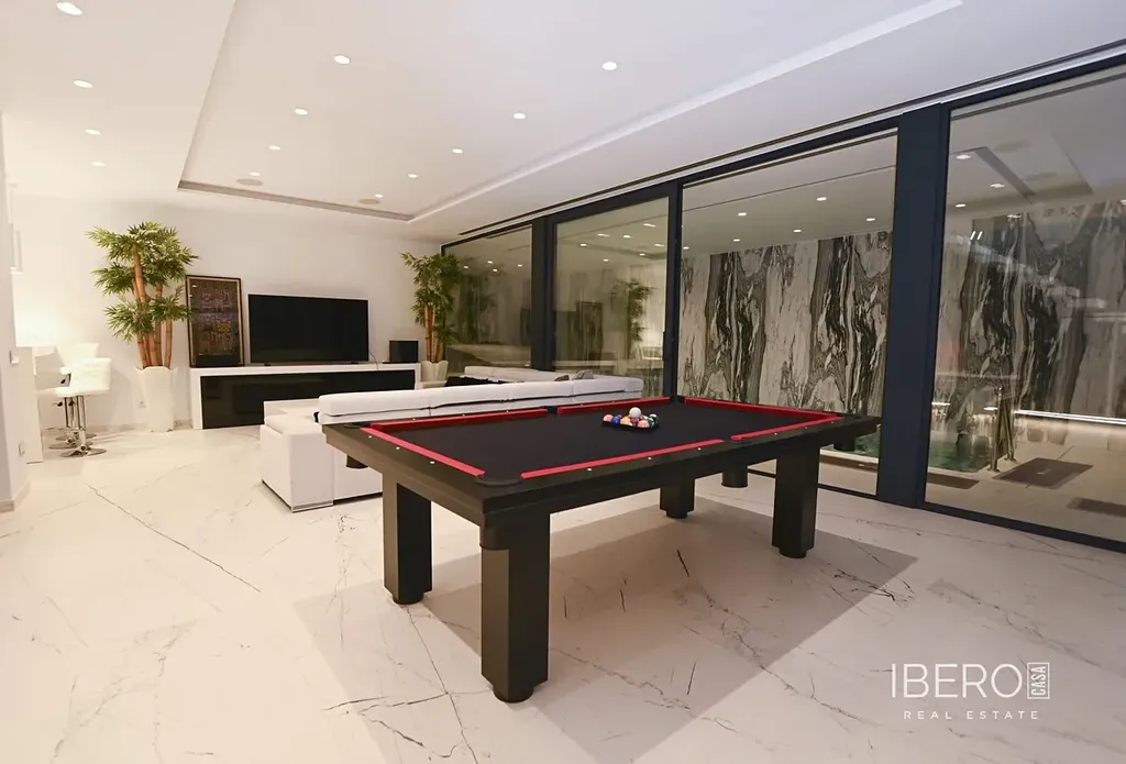 Objekt je vybaven podlahovým vytápěním, systémem inteligentní domácnosti, žaluziemi proti vloupání, výtahem spojujícím všechna podlaží, jakož i 15kW solárními panely, tepelnými čerpadly pro ohřev vnitřního a venkovního bazénu a klimatizačním systémem, které výrazně snižují náklady na údržbu domu. V ceně je také kompletní vybavení.