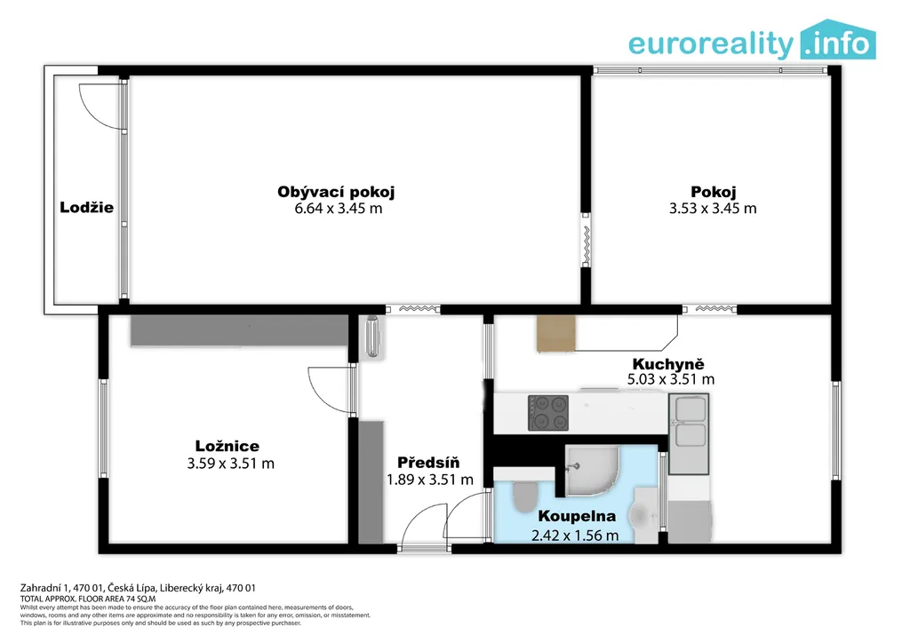 Dispozice bytu nabízí praktické uspořádání místností, koupelna je vybavena sprchovým koutem. Byt je připraven k okamžitému převzetí.