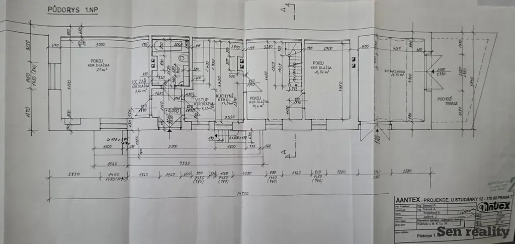 Dispozici obytné části 4+kk tvoří tři pokoje, jídelna s kuchyňským koutem, koupelna s WC, chodba a prosklená předsíň se vstupem do sklepa. Obytnou část 1+1 tvoří pokoj, kuchyňský kout a koupelna s WC. Druhé nadzemní podlaží o ploše 100 m2 se dvěma lodžiemi je připraven0 k rekonstrukci a nabízí možnost vybudování další plnohodnotné obytné části dle vlastních představ.