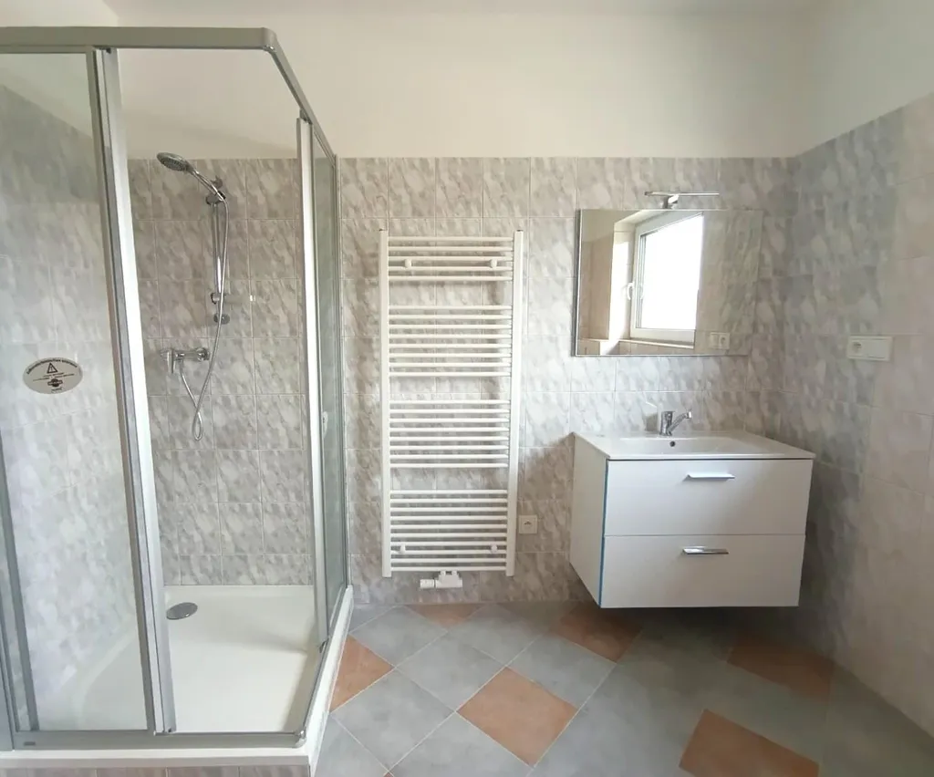 Prodej novostavby rodinného domu v blízkosti centra města Frenštát p. R. Celková plocha pozemku 433 m2, z toho zastavěná 95 m2. Stavba je dvoupodlažní, nepodsklepená, zateplená, energetická třída C. Byly použity standartní moderní materiály a prvky (plastová okna s izolačními trojskly, střešní krytina plech s trvanlivou povrchovou úpravou, rozvody elektřiny a topení v mědi, rozvod internetu a TV po domě), včetně tepelného čerpadla vzduch-voda značky De Dietrich s intuitivní termoregulací v zimě topí, v létě chladí. Stavba je napojena na veřejný vodovod a kanalizaci, na pozemku se také nachází retenční nádrž na dešťovou vodu. Jednou zdí přiléhá k sousednímu domu, ale zeď není společná, v meziprostoru se nachází protipožární izolace. Přízemí domu je bezbariérové a skládá se z prostorného obývacího pokoje spojeného s kuchyňským koutem, koupelny s wc a sprchou, garáže, technické místnosti, komory a vstupní chodby. Z obývacího pokoje vedou na zahradu dvoje velké prosklené dveře a světlo dodají velkoplošná okna. Garáž má vrata na dálkové ovládání. V patře najdeme tři neprůchozí ložnice a druhou koupelnu, také se sprchovým koutem, wc a umyvadlem. Ze zahrady a některých pokojů je pěkný výhled na okolní hory. Podlahová plocha domu 180 m2. Dům byl zkolaudován v listopadu 2024, vnitřní prvky jsou všechny dokončeny. Kuchyňská linka nebude instalována. Zahrada je upravena a oseta trávníkem. Stavba se nachází v katastru obce Tichá, blíže je však do Frenštátu. K dispozici ihned. S financováním mohu pomoci.