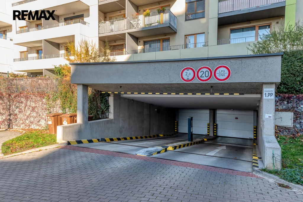 Byt se prodává pouze společně se sklepní jednotkou (150 000 Kč) a přiděleným garážovým stáním (550 000 Kč) v -1. podlaží ve spoluvlastněné garážové hale, s přímým a pohodlným přístupem výtahem z patra bytu.