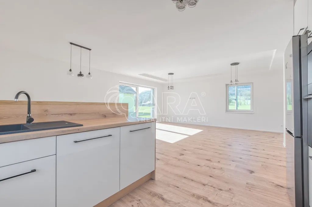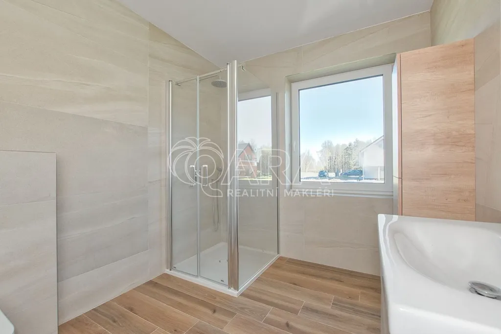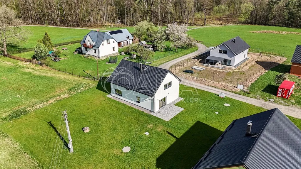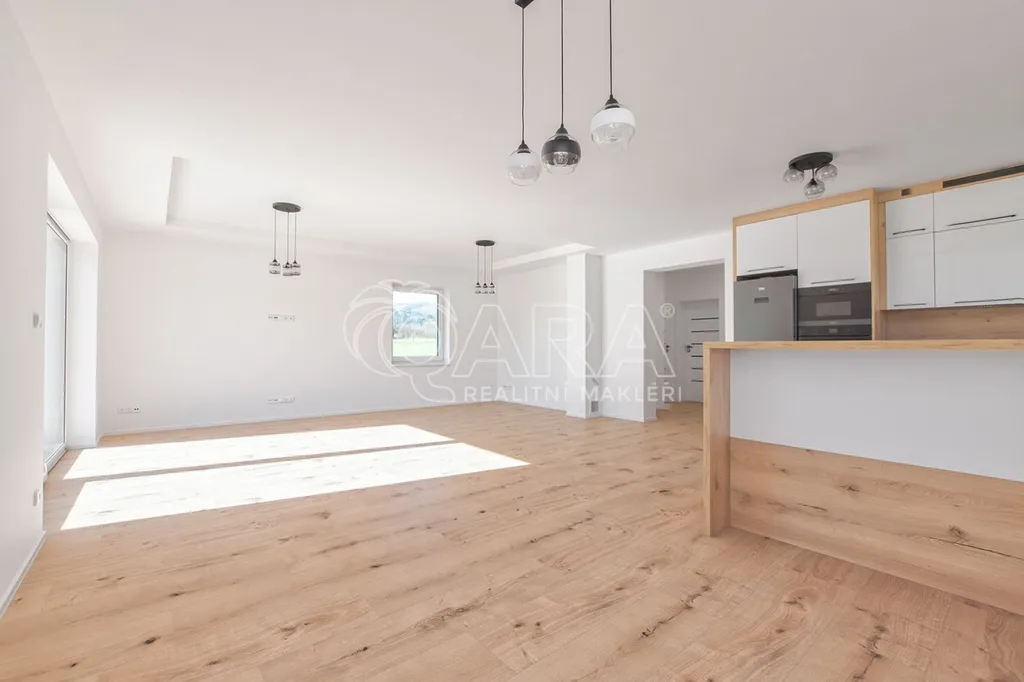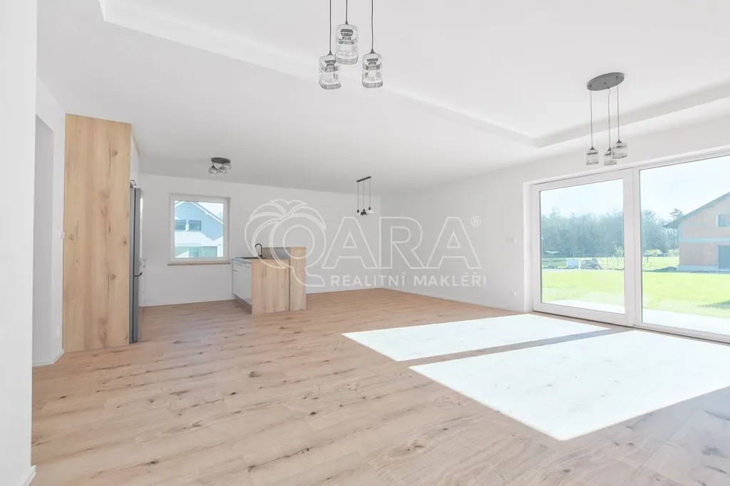 Dům byl dokončen v roce 2024 a je navržen tak, aby splňoval nároky na moderní a úsporné bydlení. Na první pohled vás zaujme velký obývací pokoj propojený s kuchyní o rozloze 50 m, který disponuje přímým vstupem na terasu.