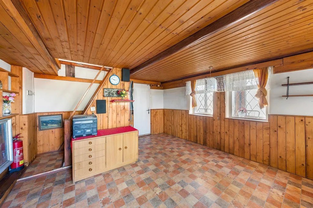 Nabízíme k prodeji chatu k rekonstrukci na krásném místě na samotném konci vyhledávané zahrádkářské oblasti na Dělové cestě v Litoměřicích s výhledem na řeku Labe a velkou část Polabské nížiny a České Středohoří. Tato nemovitost není pro každého. Je pro ty, kteří hledají soukromí, klid a kouzlo původní zástavby, kterou si přetvoří k obrazu svému. Pozemek s celkovou výměrou 1421 m2 je situován ve svahu a nabízí úžasnou hru s prostorem. Je ideální pro realizaci terasovitých záhonů, okrasných skalek a pěstování ovoce. Hlavní obytný prostor má výměru cca 17 m2, kuchyňský kout cca 7,5 m2, veranda s úžasným výhledem cca 5,7 m2, podkroví cca 16m2 s výškou stropu 187 cm a malou komorou. Ve spodní části se nachází místnost cca16 m2 se sprchovým koutem, toaletou, která nabízí dostatek dalšího úložného prostoru a dílna cca 6 m2. Nemovitost je připojena na rozvody elektrické energie. Možné napojení na sezónní, veřejný řad pitné vody. Odpady jsou svedeny do jímky. Vytápění je řešené kamny na tuhá paliva. Chata je připravena pro nového majitele, který má vizi. Dělová cesta je jednou z nejhezčích zahrádkářských oblastí v Litoměřicích. Nabízí rychlou dostupnost do centra města (pár minut autem či na kole), a přitom jste uprostřed přírody. Okolí nabízí nespočet možností pro cykloturistiku, procházky podél Labe a rybaření. Přijďte se podívat na ten výhled a nechte se okouzlit.