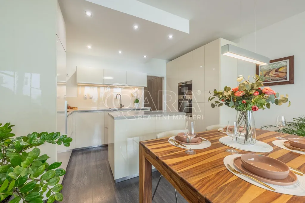 Exkluzivní nabídka prodeje bytu o dispozici 4+kk s lodžií a balkonem, ul. Tyršova, Benešov. Byt je umístěn ve 3. NP bytového domu s výtahem z roku 2012 nacházejícím se téměř přímo v centru města.