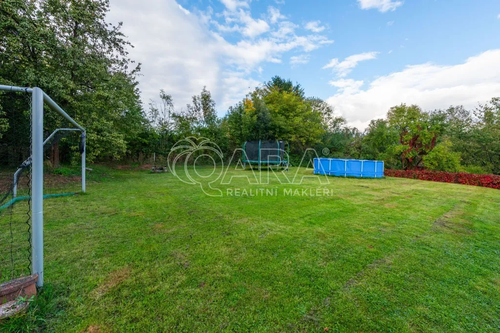 Za domem se nachází rovinatý pozemek, vhodný pro zahrádkáře, ale také jako skvělé místo pro dětské vyžití. Součástí je zahradní domek o výměře cca 36 m, který poslouží jako zázemí pro údržbu pozemku či dílna. K dispozici jsou rovněž tři parkovací místa za oploceným pozemkem.