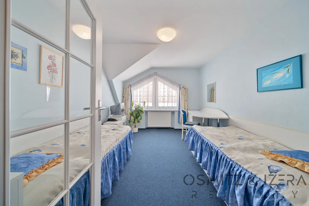 Nabízíme k prodeji prostorný penzion v klidné lokalitě u historické vodárenské věže, jen pár minut pěšky od metra Ládví (linka C). Objekt je zkolaudován a provozován jako penzion. Možno využití ale i jako sídlo firmy nebo pro jiné využití. Při určitých technických úpravách je zde i možnost přestavby části nemovitosti na samostatné bytové jednotky. Skvělá dostupnost autem na městský okruh a MHD (tramvaj, metro, autobus, PID) 3 minuty pěšky od domu.