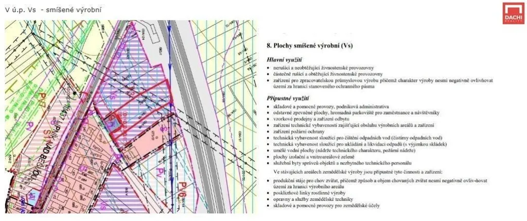 Pozemek je ideální pro firmy, které hledají kombinaci výroby, skladování a administrativy na jednom místě.