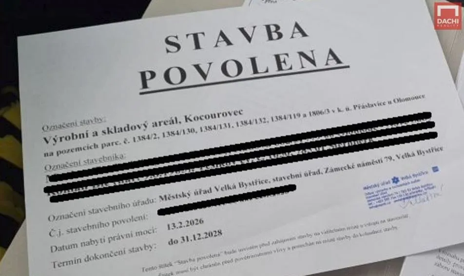 Díky vydanému stavebnímu povolení lze okamžitě stavět. Povolení je vydáno. Halu se zázemím můžete začít realizovat téměř okamžitě.