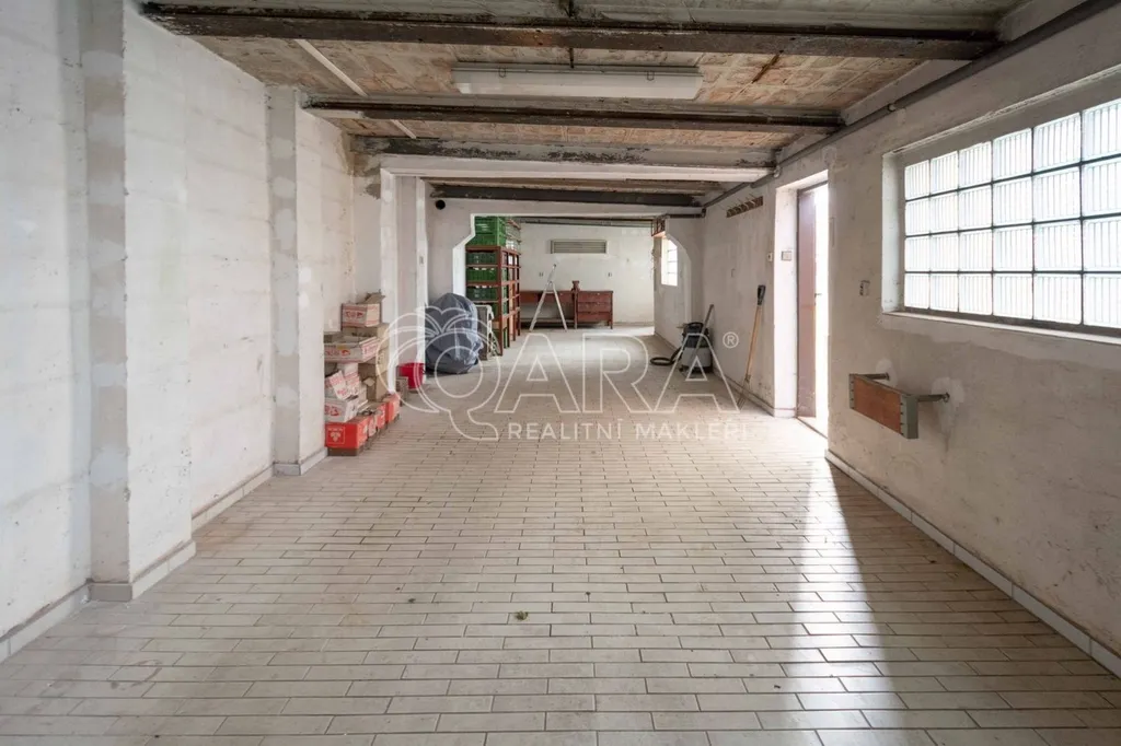 Dispozice přízemí: garáž s dílnou o velikosti 83 m2, sklípek, kuchyně, předsíň a tři pokoje o celkové velikosti 61 m2. Ze zahrady vstup do původní prádelny + další skladové prostory o velikosti 20 m2.