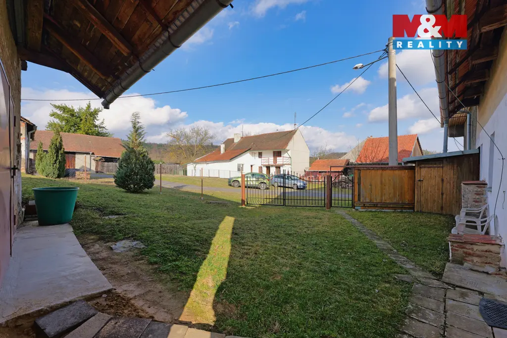Za domem je stodola, která nabízí dostatek prostoru pro skladování, dílnu nebo parkování. Celková plocha pozemku činí 421 m² a umožňuje parkování více vozidel. Velkou výhodou je klidná lokalita v blízkosti lesů, zahrada a také možnost příjezdu na pozemek ze dvou stran.