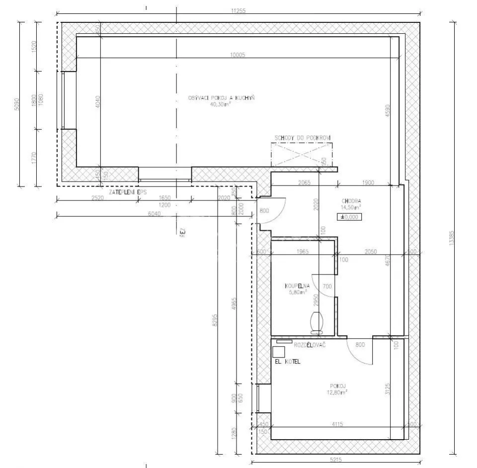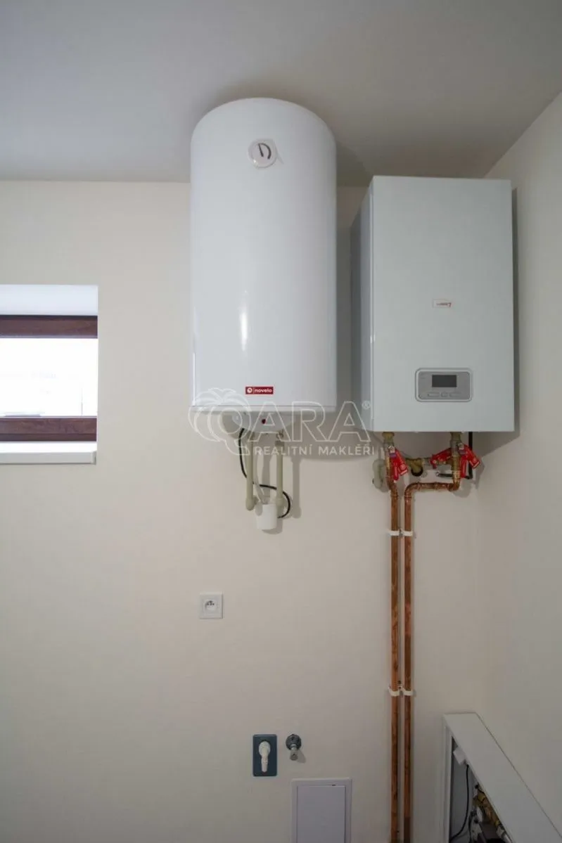 V celém přízemí podlahové topení s napojením na nový elektrokotel + otopný žebřík v koupelně.