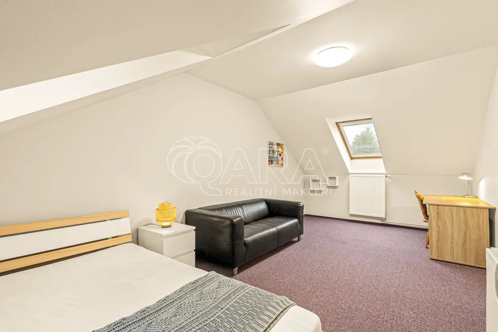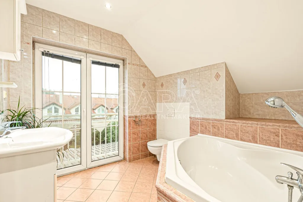 Velmi dobře udržovaný dům 5+kk nabízí téměř dvě stovky metrů čtverečních prostoru. Díky panoramatickým francouzským oknům je světlo hlavním hostem v přízemí i v patře. Najdete tu praktické vestavěné skříně a koupelna potěší velkorysým prostorem s rohovou vanou a výhledem na oblohu.