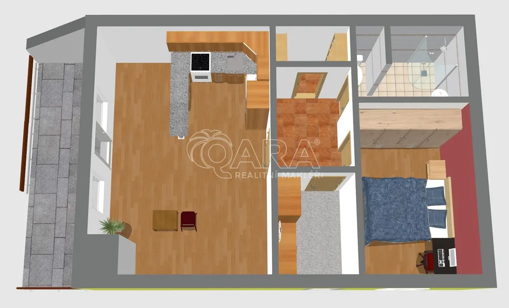 Nabízíme atraktivní nabídku dlouhodobého pronájmu nadstandardního bytu 2+kk se šatnou, terasou o velikosti 12,9 m2 a malou zahradou 26 m2 v přízemí cihlového domu v klidné části Nového Jičína, na ul. Novellara. Z obývacího pokoje s kuchyňským koutem je vstup na terasu, prostorná koupelna s WC disponuje sprchovým koutem a je zde příprava na připojení pračky. V celém bytě jsou plovoucí podlahy a plastová okna. Bezproblémové parkování přímo u domu. Byt se nachází v klidné části, kde je zástavba rodinných domů. Energetická náročnost budovy je označena třídou C.