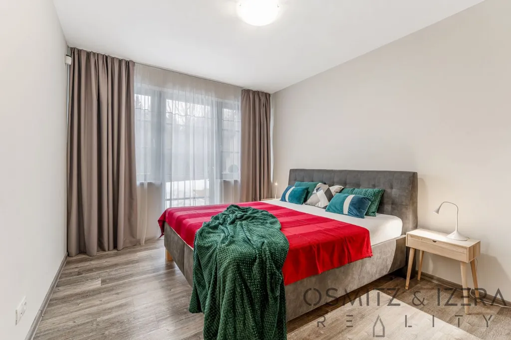 Prostor a soukromí: Velkorysý obývací pokoj s kuchyňským koutem, samostatná ložnice a přímý vstup na soukromou terasu s navazující předzahrádkou.