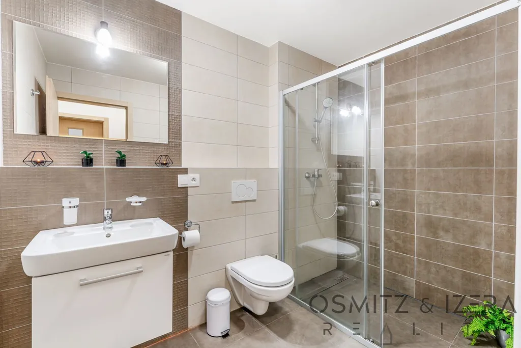 Byt se nachází v moderním apartmánovém domě. Díky chytré architektuře nabízí plnohodnotné prosluněné bydlení s jihovýchodní orientací, která vás probudí ranním sluncem a nabídne odpolední pohodový relax na terase. Výhled z terasy a oken není rušen žádnou další stavbou, je zde krásný výhled na okolní kopce.