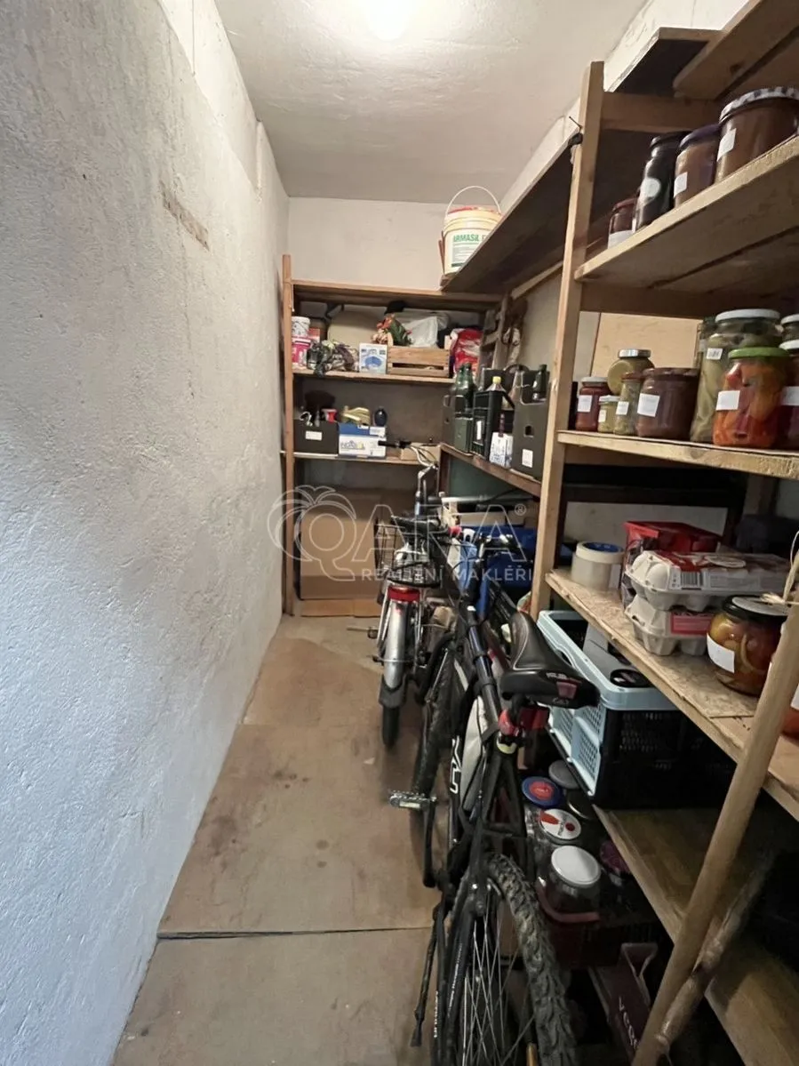 Sklep: K bytu náleží velký zděný sklep (5,3 m) ideální pro kola a sportovní vybavení.