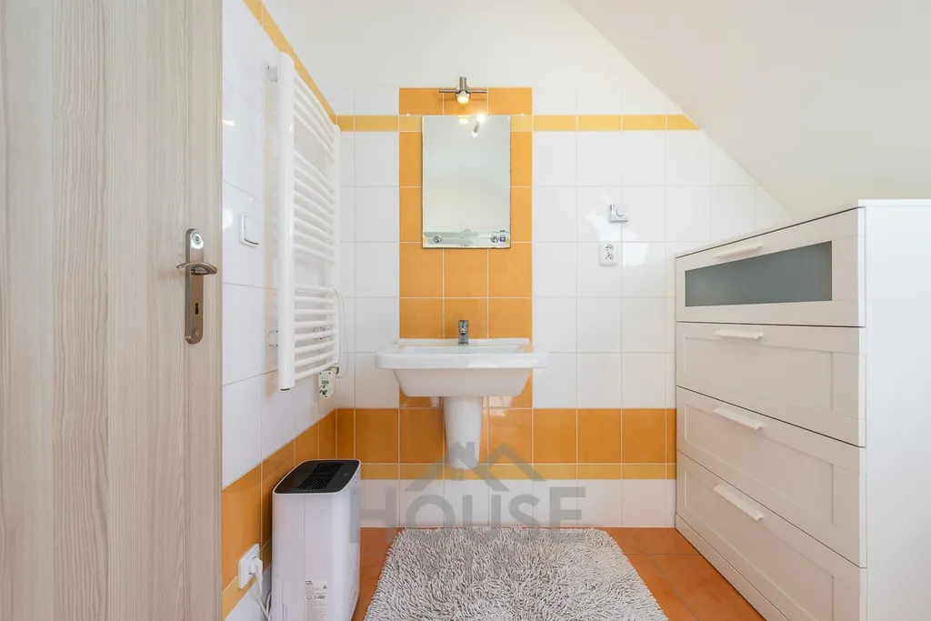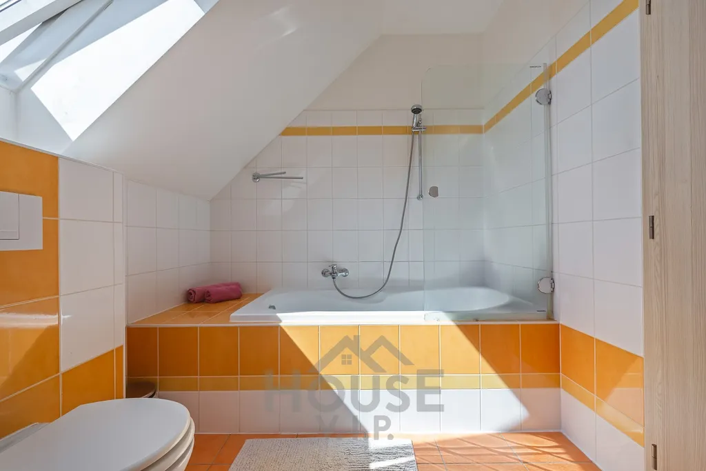 V patře jsou pokoje vybaveny radiátory, přičemž koupelna disponuje kombinací podlahového vytápění pro vyšší komfort. Velkou výhodou nemovitosti je možnost dalšího rozšíření – na půdě lze vybudovat další obytný pokoj a obdobný potenciál nabízí i zimní zahrada, ze které lze vytvořit plnohodnotný pokoj.