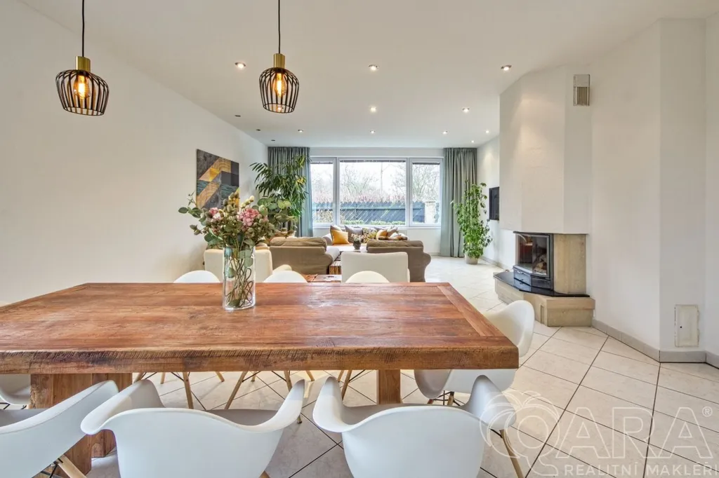 Zázemí: dvojgaráž + další parkování na pozemku, mnoho vestavěných šaten a úložných prostor.