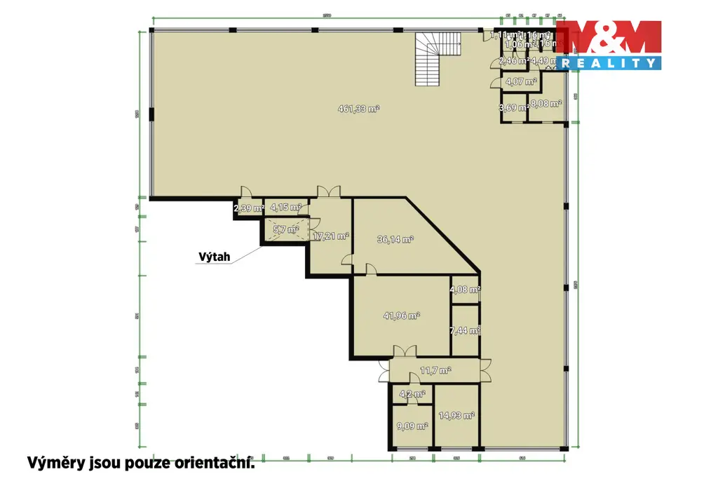 Nabízíme k pronájmu atraktivní a vzdušné prostory v 1. patře zavedeného obchodního centra Družba, jehož metráž činí cca 641 m² a nabízí tak maximální flexibilitu pro vaše budoucí úpravy nebo rozdělení prostor dle Vašich potřeb. Součástí je nákladový výtah, který je dostupný z rampy ve vnitrobloku, kde je možný příjezd nákladním automobilem. Velkoformátová okna po celé délce prostoru zajišťují dostatek denního světla. Měsíční nájemné je stanoveno na 165 Kč/m² v závislosti na velikosti pronajímaného prostoru a energie jsou hrazeny měsíčně na základě faktury podle skutečné spotřeby. Vratná kauce není vyžadována. Díky své poloze a historii je objekt velmi dobře známý a těší se stabilní návštěvnosti. OC Družba se nachází v lokalitě s výbornou dopravní dostupností a možností parkování v blízkosti. V objektu sídlí již zavedené provozovny (např. COOP, květinářství, kadeřnický salon, Pošta).
