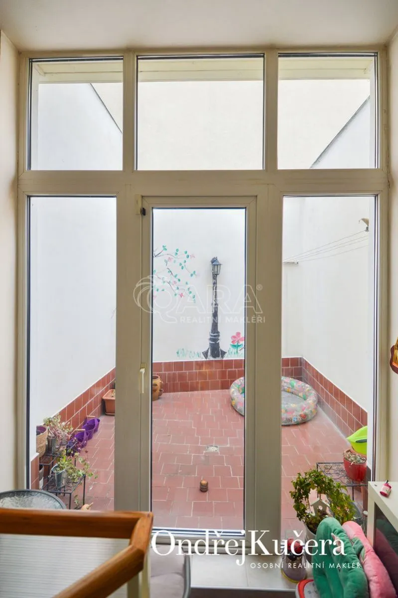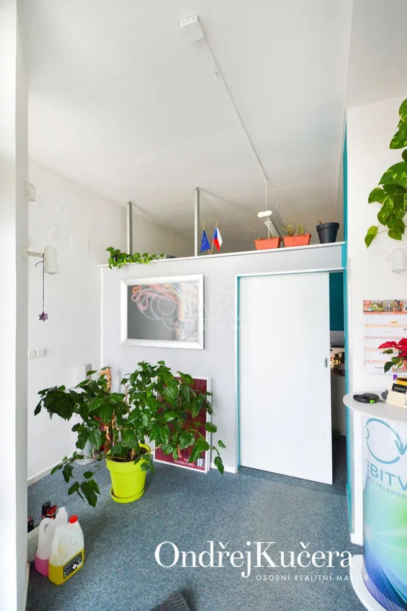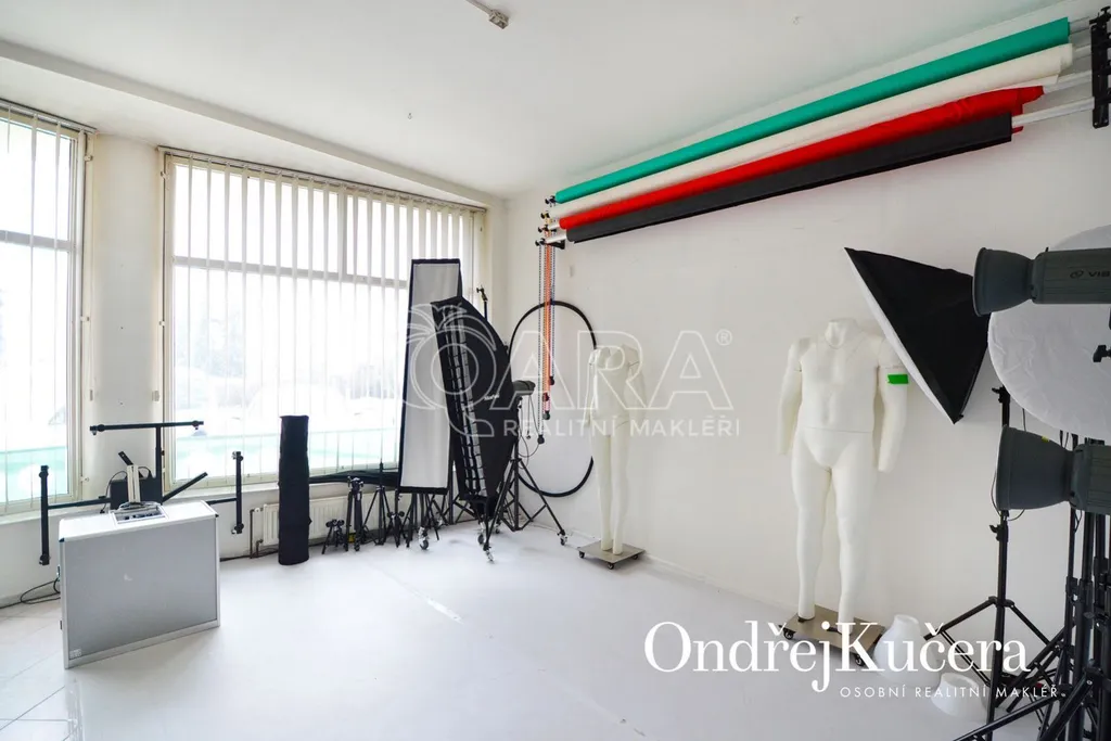 V přízemí je prostorný ateliér o rozloze 125 m, ideální pro galerii, showroom či kancelářské prostory. V prvním patře je světlý a prostorný byt 2+kk o ploše 97 m, přístupný točitým schodištěm z přízemí, což zajišťuje jedinečné propojení pracovního a soukromého prostoru. Vhodné také na investici, protože momentálně je dům obsazen dobrými nájemníky.