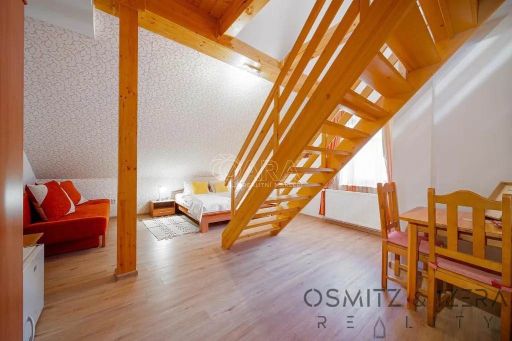 - Mezonetové pokoje v penzionu lze přebudovat na apartmány.