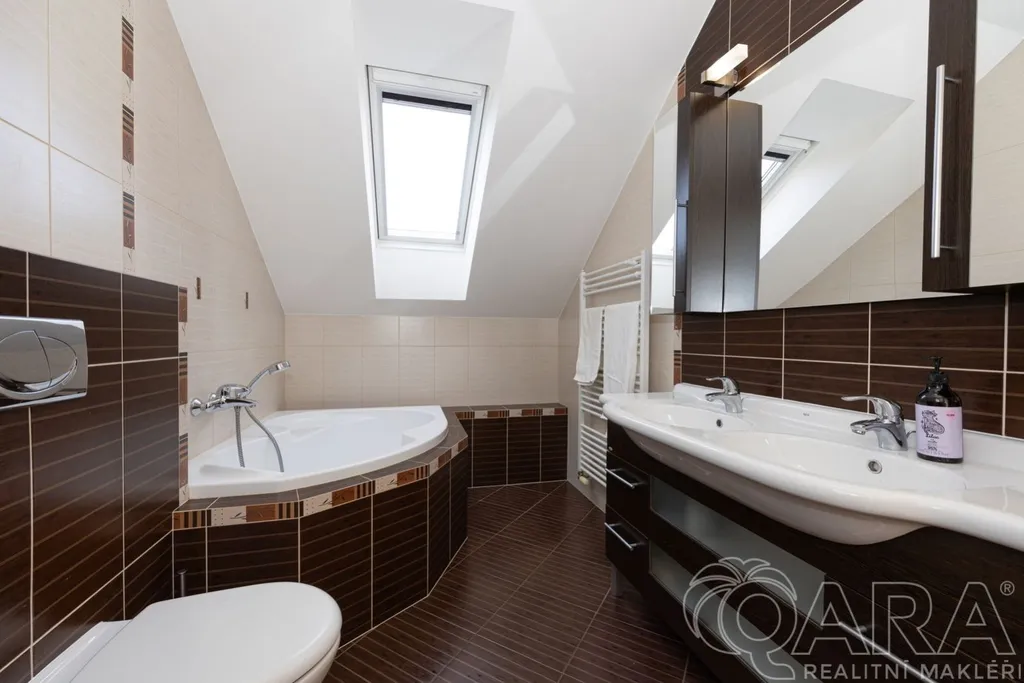 Nabízíme k prodeji krajový řadový rodinný dům v atraktivní a klidné části obce Dolní Břežany, okres Praha-západ. Dům disponuje obytnou plochou 146 m a zastavěnou plochou 89 m a nachází se na pozemku o celkové výměře 485 m. Součástí dispozice přízemí domu je prostorný obývací pokoj s krbovými kamny a kuchyňským koutem s na míru vyrobenou kuchyňskou linkou. V patře jsou pak 3 pokoje, kde u jednoho z nich je také na míru zhotovená praktická šatna. Součástí domu je prostorná garáž a prakticky řešený půdní prostor s dostatkem úložného místa. Vytápění zajišťuje plynový kotel a horní podlaží má klimatizaci. K nemovitosti náleží krásná vzrostlá zahrada se zahradním domkem, která poskytuje příjemné zázemí pro relaxaci i hobby aktivity.