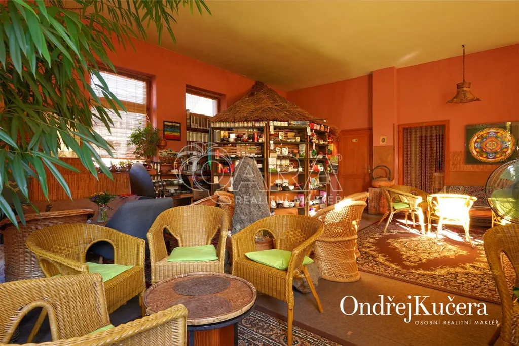 Dům je rozdělen na dvě části. V prvním vchodu se nachází restaurace s potravinami v přízemí. Nad ní je vyhlášená a skvěle hodnocená tradiční čajovna s velkou terasou. V posledním patře je 62 m byt 2+kk a půda. Ve druhém vchodu je music bar v suterénu, pole gym a 41 m byt v přízemí. V prvním patře je velký sál s točitým schodištěm do druhého patra s učební a zázemím. Ve druhém patře je i 90 m byt s dispozicí 3+1. Celkově se jedná přibližně o 1.000 m s velmi zajímavým uspořádáním.