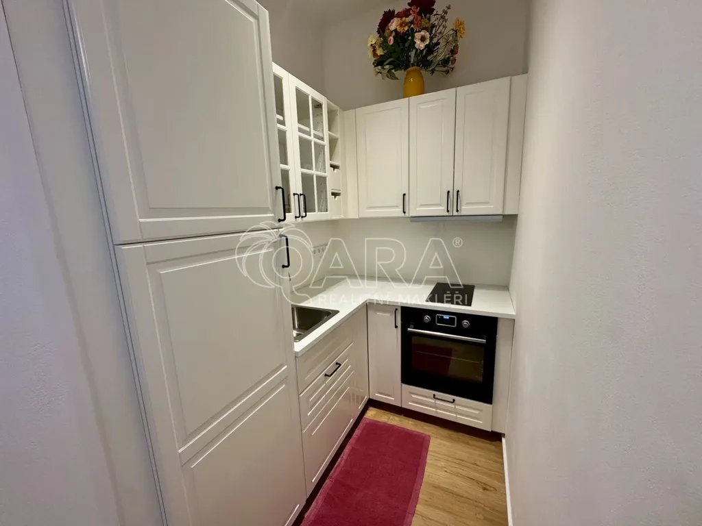 K dlouhodobému pronájmu nabízíme zařízený, prosvětlený byt 1+kk o celkové ploše 42 m s zahradou o velikosti 10 m, umístěný v 1. nadzemním podlaží. Byt je plně zařízen novým nabytkem podle fotografii, hlavni misnost je chytre rozdelena na nekolik zon: jidelnou, obyvaci, loznici. Kuchynsky kout je oddelen, dale pred koupelnou se jeste nachazi technicka mistnost, kde jsou naistalovana pracka, vesak s polickami. V predsine je velka satni skrin.