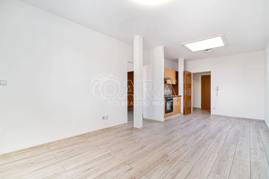 světlý obývací pokoj s kuchyňským koutem
