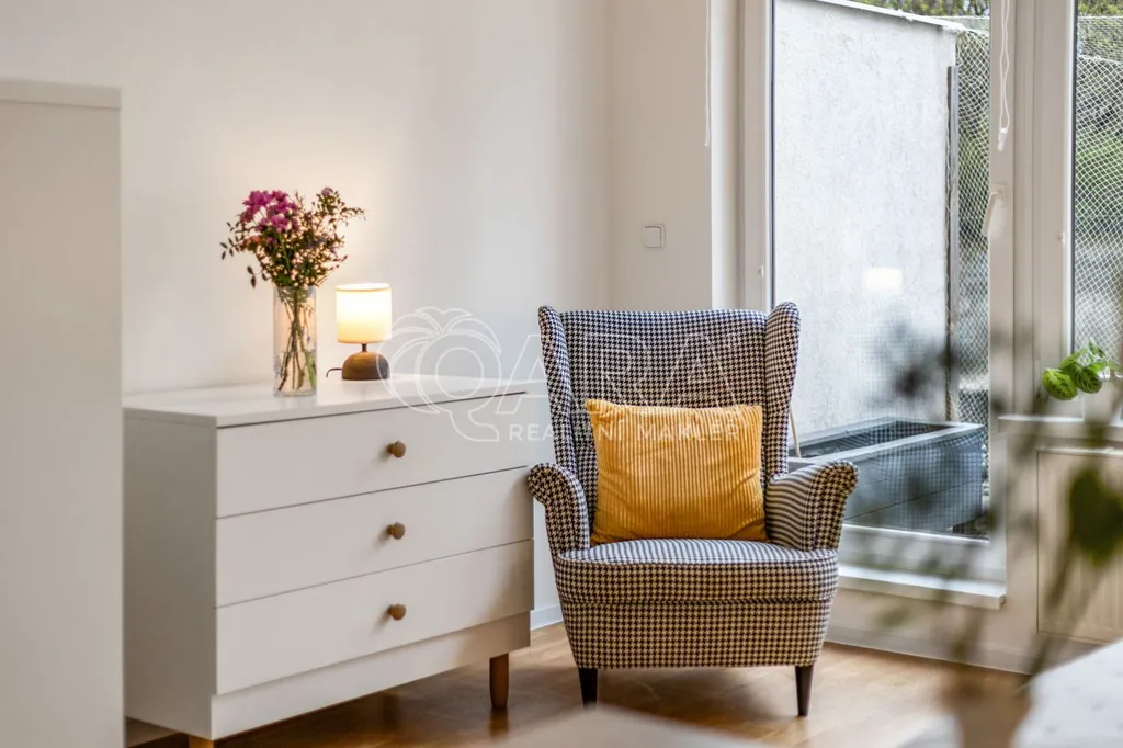 Tento byt vás překvapí svou atmosférou hned při první návštěvě. Jeho hlavním kouzlem je propojení interiéru s venkovním prostorem. Z obytné místnosti můžete vstoupit přímo na terasu s vlastní zahrádkou, která vytváří tiché, zelené útočiště uprostřed města. Ideální místo na ranní kávu, večerní sklenku vína, drobné zahradničení a odpočinek na čerstvém vzduchu.