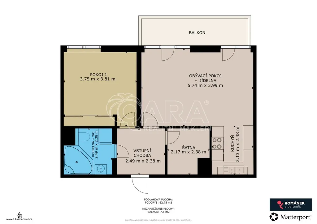 Přesné velikosti jednotlivých místností najdete na půdorysu ve fotogalerii a projít si nemovitost můžete i ve 3D virtuální prohlídce, která je také součástí nabídky ke koupi.
