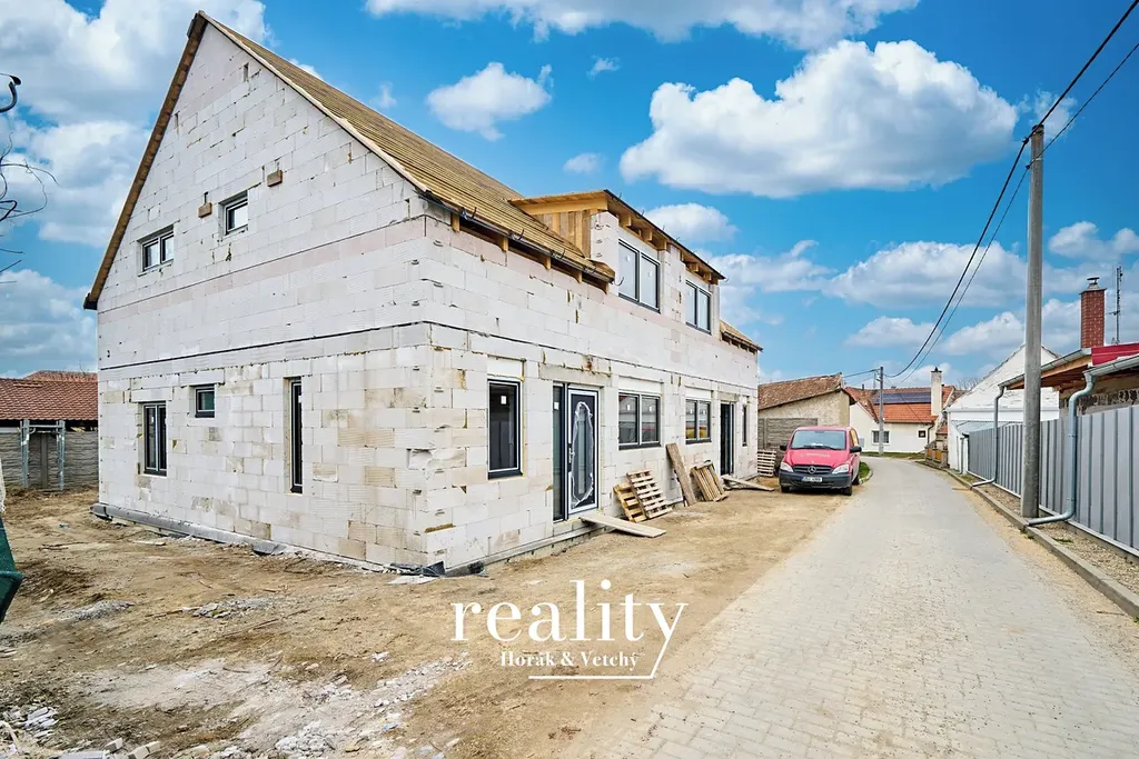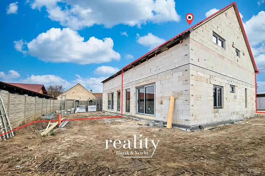 Nabízíme prostorný rodinný dům - jednu polovinu dvojdomku s užitnou plochou 130 m² v klidné lokalitě Božic na Jižní Moravě. Tento moderní dům je momentálně ve výstavbě, termín dokončení je konec května 2026. V ceně je dokončení do fáze - vnitřní podlahové krytiny, vnitřní omítky, rozvody, sanita, armatury, venkovní fasáda, střecha z betonových tašek, úprava terénu, kuchyň podle domluvy. Dispozice domu je 5+KK. Noví majitele zde naleznou vše potřebné pro pohodlné moderní bydlení: prostorné zádveří, na které navazuje prostorná technická místnost s pračkou, sušičkou a místem na topnou jednotku, samostatnou pracovnu, obývací pokoj propojený s jídelním koutem a kuchyní, ze kterého je vstup do zahrady, ložnice propojená s velkou šatnou, dva dětské pokoje a dvě koupelny. V zadní části pozemku naleznete menší zahradu, kde můžete vybudovat oázu klidu a zeleně a relaxu. Jedná se o energeticky velmi úsporný dům s tepelným čerpadlem. Cihlová stavba s energetickou náročností B zaručuje komfortní bydlení s minimálními náklady na energie. Tato nemovitost je ideální volbou pro rodiny hledající moderní bydlení za příjemnou cenu. Celkově lze infrastrukturu v Božicích hodnotit jako dobře rozvinutou s pozitivním trendem modernizace, připomeňme například relaxační centrum s plaveckým bazénem, cyklistické a vinařské stezky "Údolím lásky" , obchody, lékaři, ZŠ a mateřská škola. Znojmo 22 km, Brno 56 km, Vídeň 130 km. Nebojte se investovat do své budoucnosti a začněte si užívat život v novém domově v krásné vinařské oblasti Božic.