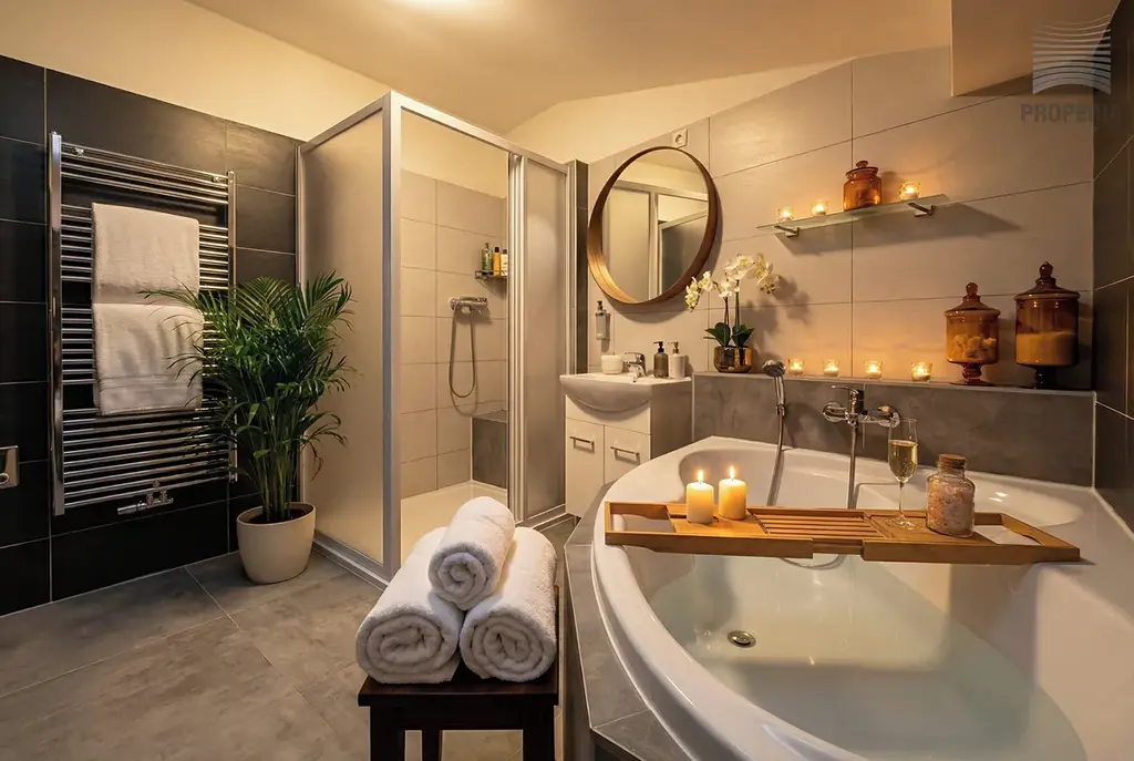 - koupelnu se sprchovým koutem i rohovou vanou,