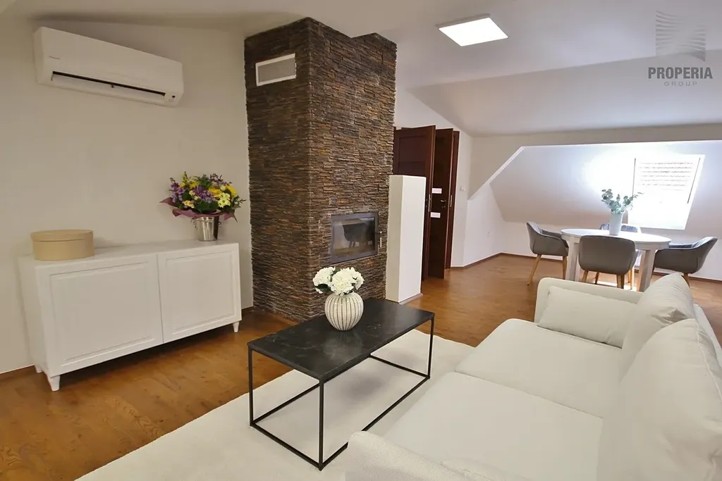 Byt o celkové podlahové ploše 118 m² se nachází ve 2. nadzemním podlaží kompletně zrekonstruovaného cihlového domu a nabízí nadstandardní prostor, soukromí i komfortní rodinné bydlení v bezprostřední blízkosti přírody.