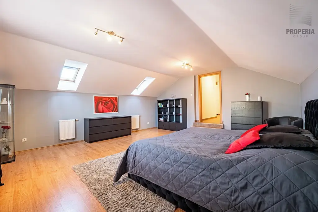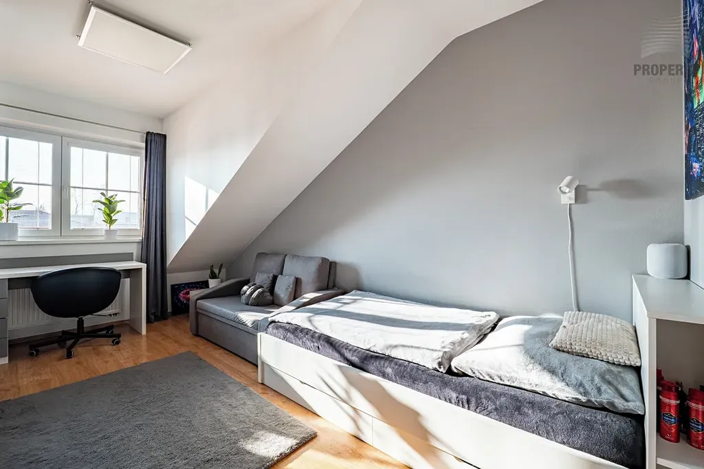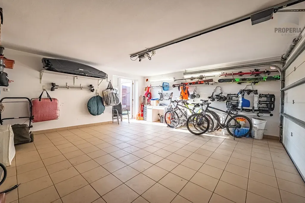 Součástí domu je také prostorná dvojgaráž o výměře 34 m², která poskytuje nejen komfortní parkování, ale i dostatek úložného prostoru.