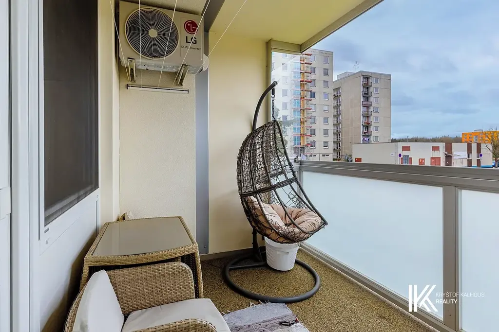 Dispozice bytu zahrnuje tři samostatné pokoje, prostorný obývací pokoj průchozí do samostatné kuchyně, vstupní chodbu, koupelnu, WC a zasklenou zvětšenou lodžii. Díky promyšlenému uspořádání nabízí byt dostatek soukromí i komfortu pro rodinu či spolubydlení.