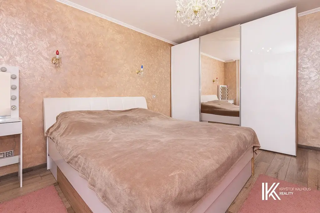 Dva pokoje jsou zařízeny manželskou postelí a šatní skříní, třetí pokoj disponuje šatní skříní a je připraven k dovybavení dle individuálních potřeb nájemníka (např. jako dětský pokoj, pracovna apod.).