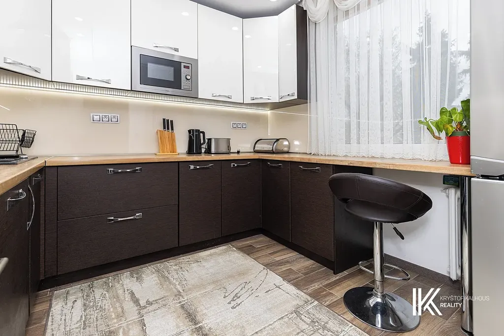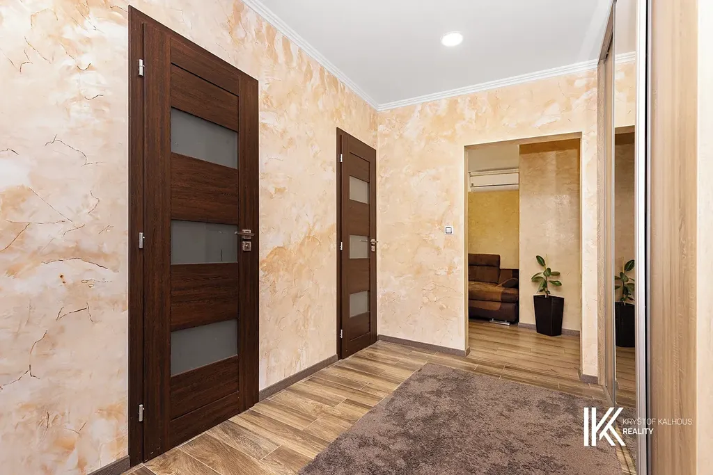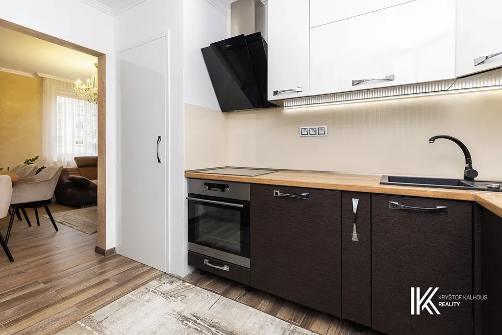Byt prošel kompletní rekonstrukcí, je vybaven kvalitním moderním nábytkem a stylovými benátskými štuky na stěnách. Bezpečnost zajišťují moderní bezpečnostní dveře se dvěma zámky a kamerou místo kukátka.