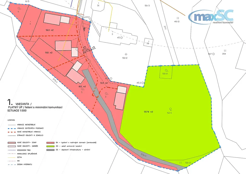 Pro vaši představu jsme nechali zpracovat varianty možného využití území s maximální efektivitou, avšak při zachování dostatečného komfortu venkovského bydlení.