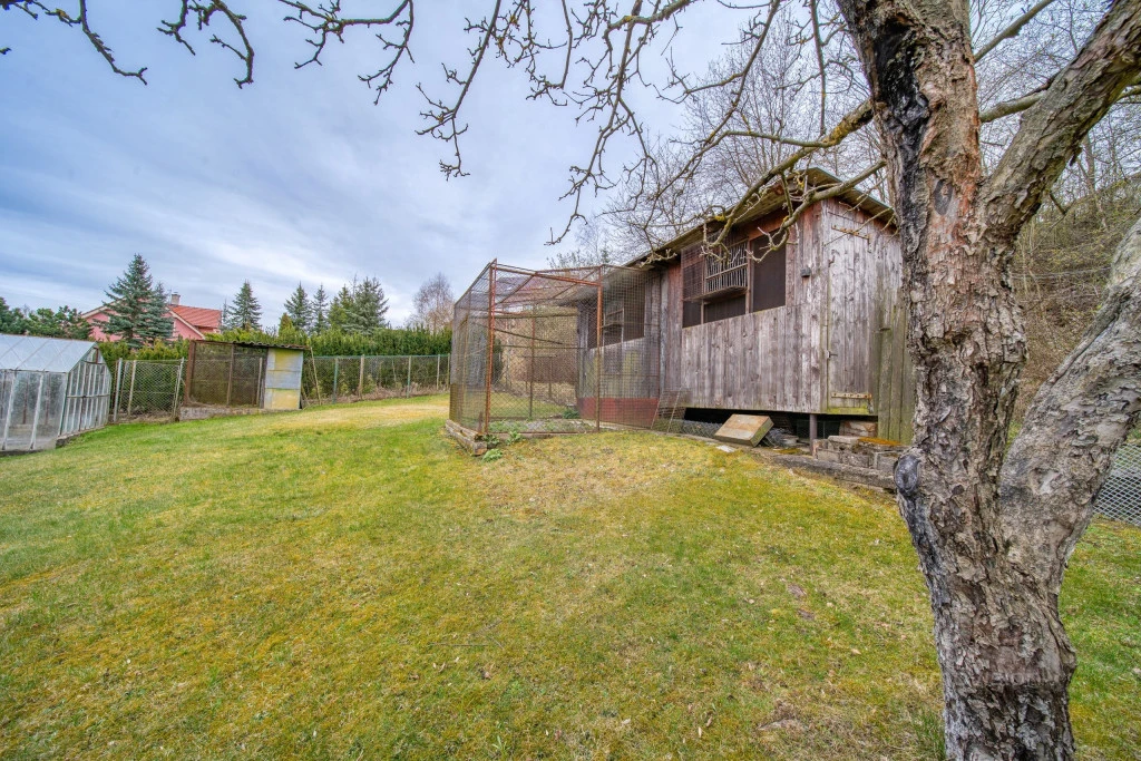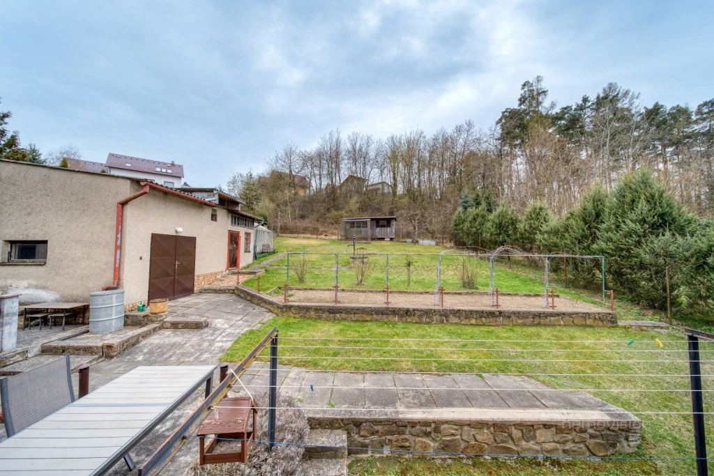 Na zahradě je k dispozici posezení, udírna a praktické zázemí pro uskladnění nářadí.