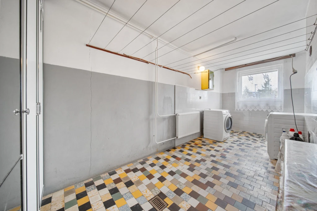 Přízemí: samostatná bytová jednotka 1+1, garáž, prádelna, technické zázemí, sklep a úložné prostory, které se dají využít na vybudování dalších obytných místností.