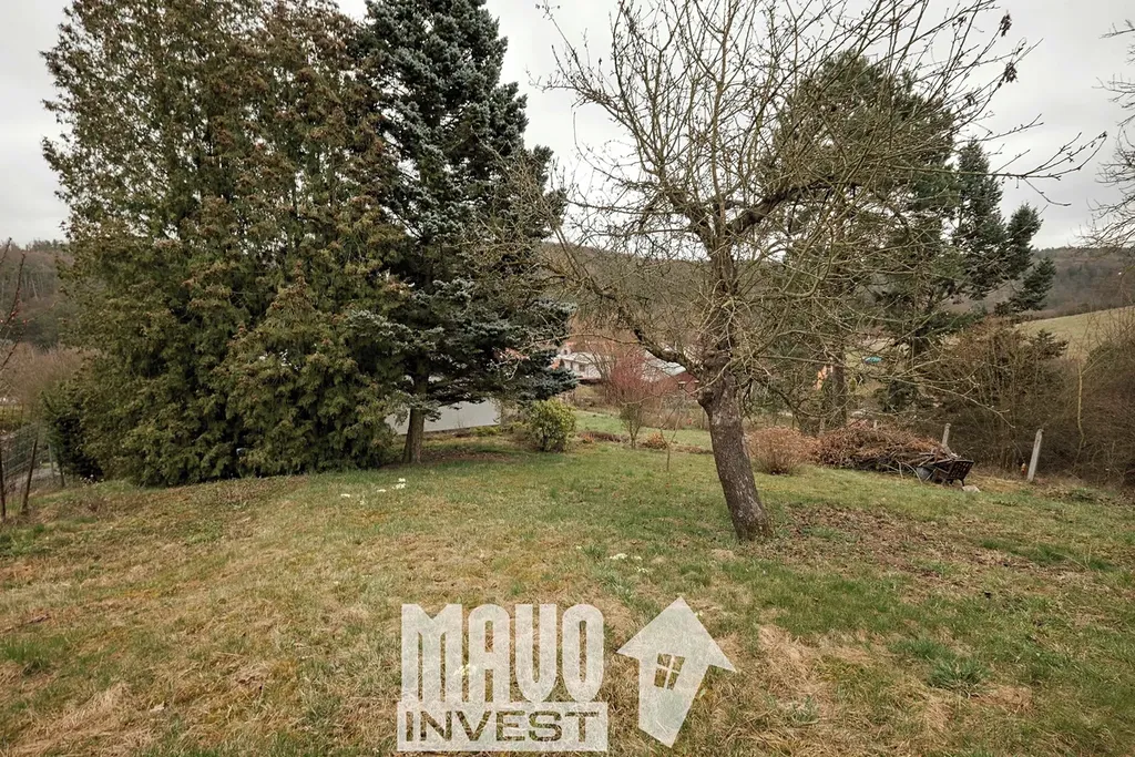 Svažitá zahrada nabízí dostatek soukromí a krásný výhled do okolní zeleně. Najdete zde vzrostlé stromy a přirozený charakter pozemku, který vybízí k relaxu, zahradničení i víkendovému grilování.