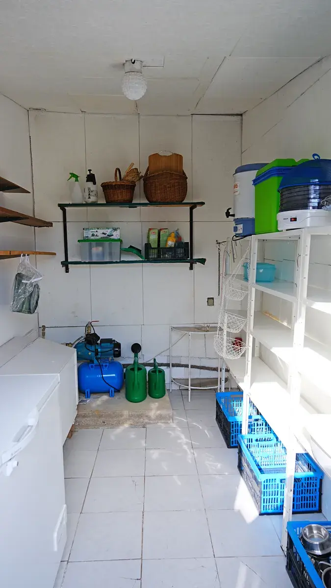 - garáž, dílna, vstupní chodba, kuchyně + kuchyňské sezení, pokoj - pracovna, sam.WC, koupelna - sprchový kout, rohová vana + umyvadlo, obývací pokoj s krbem (krbová vložka 7 kW), dřevěné schodiště s galerií do 1.patra s kovaným zábradlím