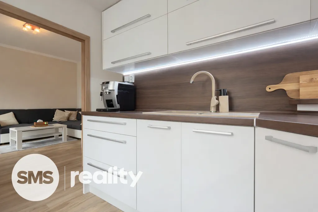 Byt o výměře 61,6 m² se nachází v 1. NP ze 4 a prošel kompletní rekonstrukcí včetně rozvodů elektřiny, vody a odpadů.