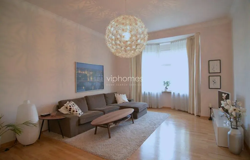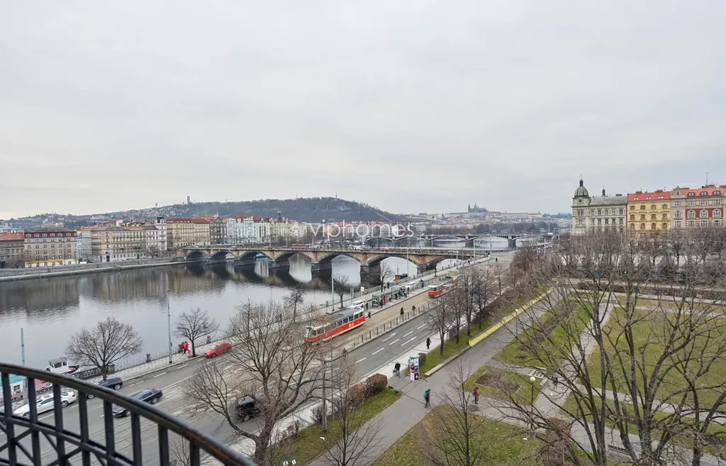 Kvalitně zařízený byt 3kk ve 2. patře plně rekonstruované secesní budovy s okouzlujícím výhledem na řeku a panorama pražského hradu. Příjemné bydlení v pěší dostupnosti od vltavského nábřeží s kulturními památkami jako Žofín, Národní divadlo a Tančící dům. Dvě minuty chůze k nejbližšímu metru na Karlově náměstí, četné tramvajové spojení do všech částí Prahy. Nedaleko je oblíbená Náplavka, Vyšehrad, četné kavárny, restaurace a bistra. Stanice metra B a tramvají Palackého náměstí pár minut chůze. Francouzské lyceum 5 minut tramvají