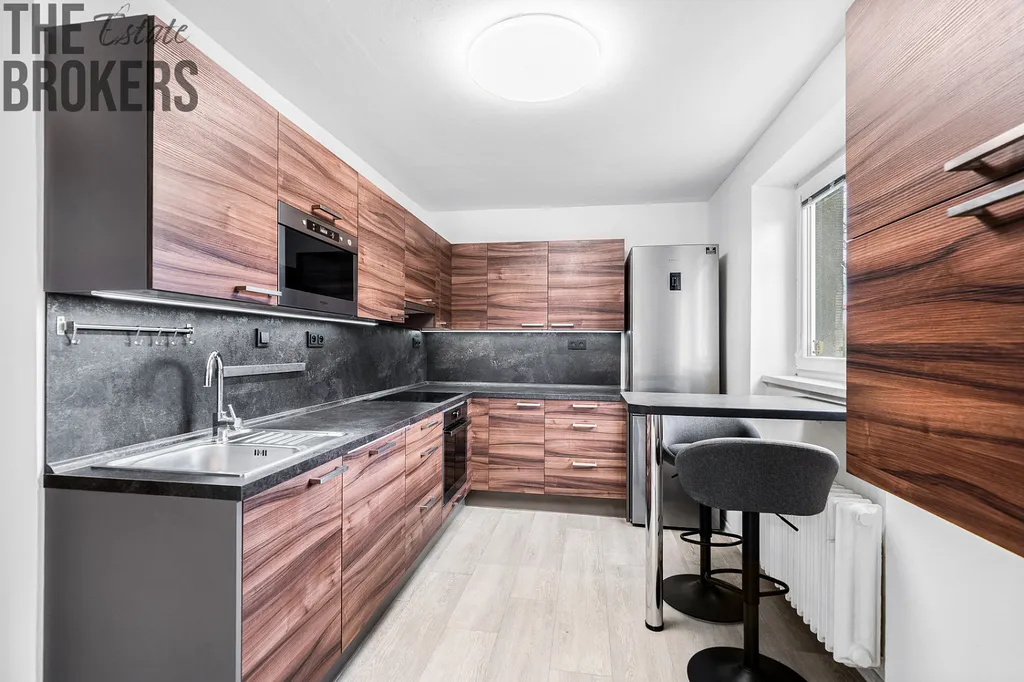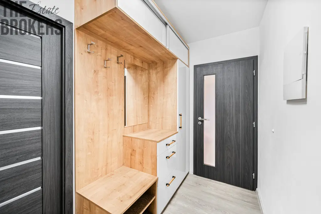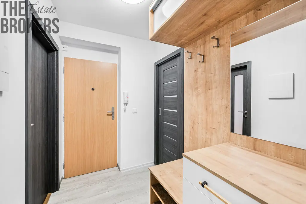 Jednotka prošla moderní úpravou a disponuje praktickým vybavením, vestavěnými úložnými prostory, bezpečnostními vstupními dveřmi a venkovním stíněním oken.