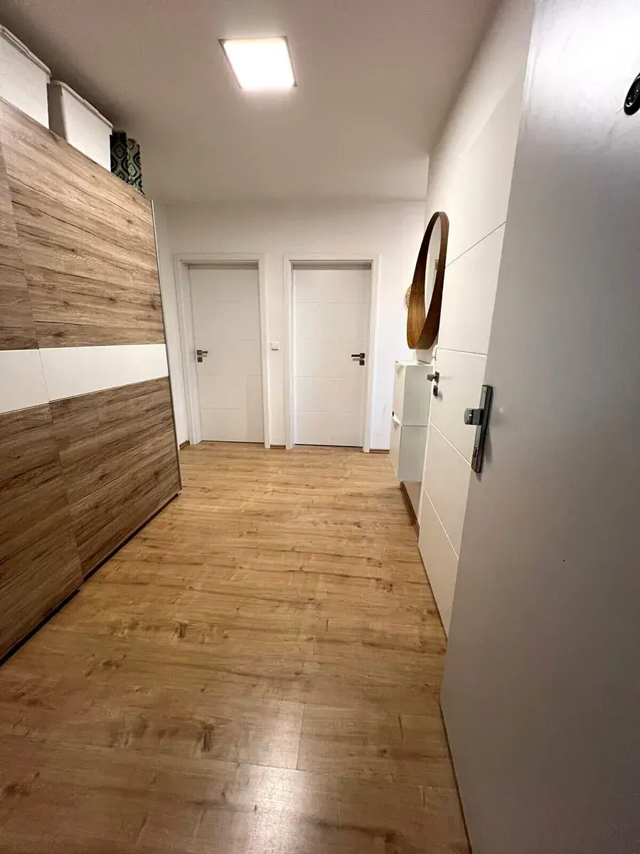 V koupelně je dlažba, v chodbě a pokojích je plovoucí podlaha. Bytový dům se nachází v klidné části obce, na okraji lesa, v sousedství domu je děstké a basketbalové hřiště, samoobsluha, zastávka městské dopravy. Parkování je veřejné.