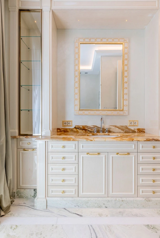 Silný dojem vytvářejí architektonické i interiérové prvky: reprezentativní vstup, přírodní kámen, podsvícená mramorová schodiště, kruhový prosklený výtah, kvalitní vestavěné prvky, promyšlené osvětlení, velká okna a přímé propojení interiéru se zahradou.