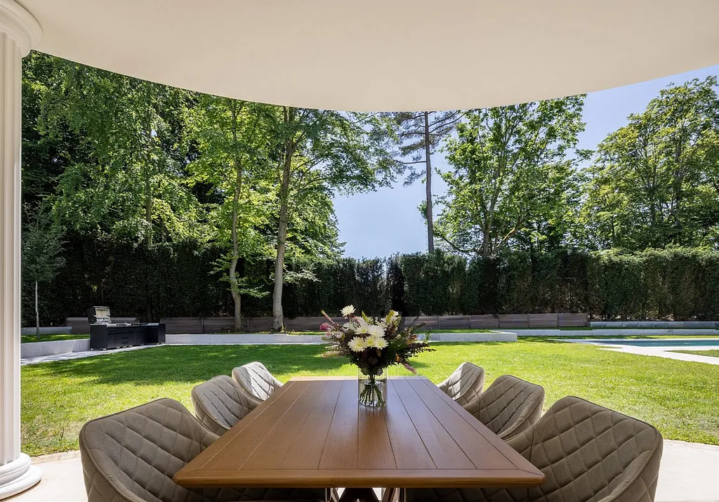 Na pozemku se nachází upravená zahrada s jihozápadní orientací, prostorné terasy, venkovní kuchyně a velký venkovní bazén o velikosti cca 100 m². Součástí domu je také plnohodnotná wellness zóna s hamamem, saunou a koupelnou se sprchou.